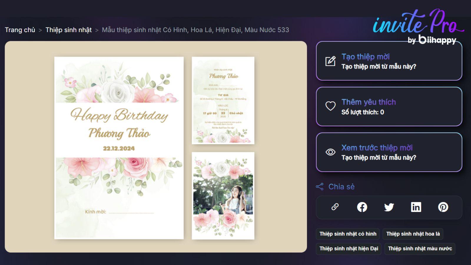 2. Hướng dẫn Tạo Thiệp Sinh Nhật Online với Biihappy invitePro