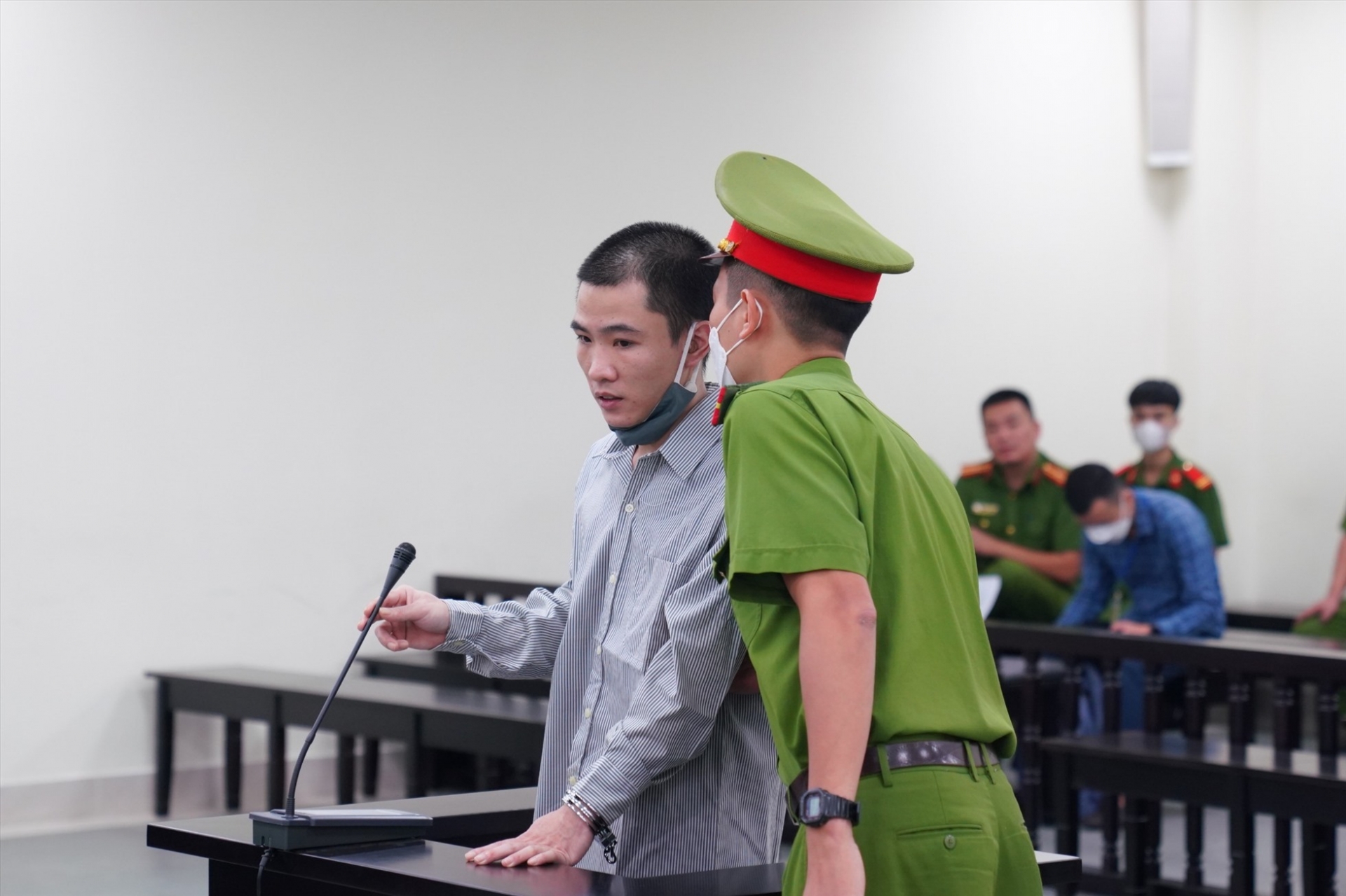 Sau khi được cảnh sát ghé tai truyền đạt thông tin, bị cáo Huyên có ý muốn cảnh sát nói xa để bị cáo nhìn miệng, cuối cùng Huyên đồng ý với các thành phần của HĐXX tham gia xử án hôm nay.